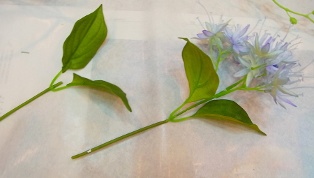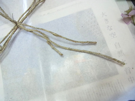 フローラルテープは最初に全部引っ張って、伸ばしてから使うと、よくくっつきます。 |