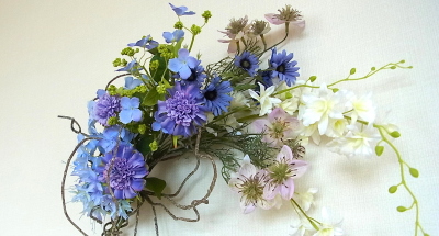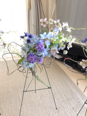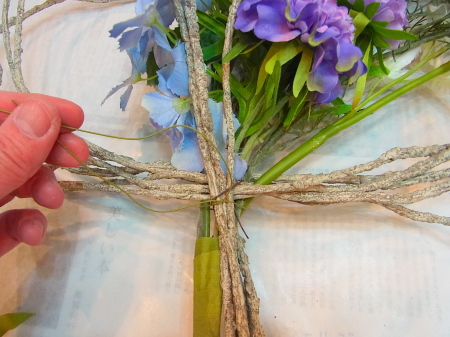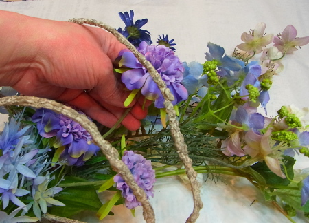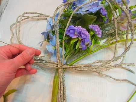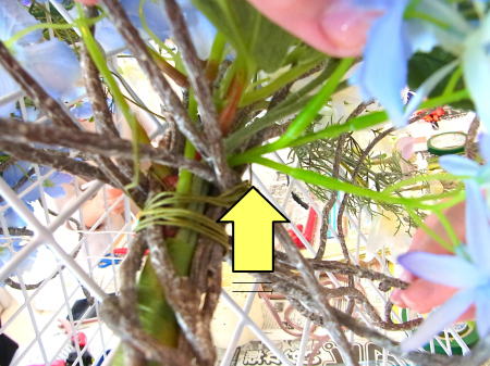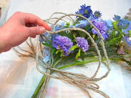 さて 先ほどのツイッグの出番です!カーブしている花たちの後ろに輪がみえるようにおきます。 |