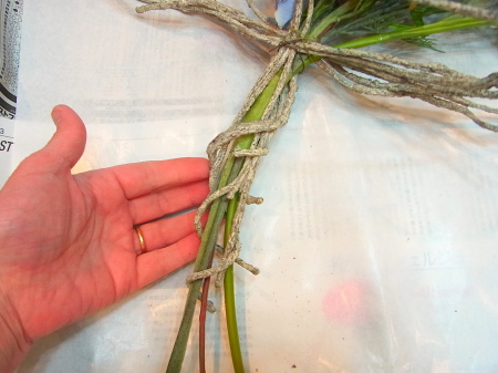 持ち手の方にあった6本のツルは 2本くらいづつ、茎に間ぎつけてボリュームを出します