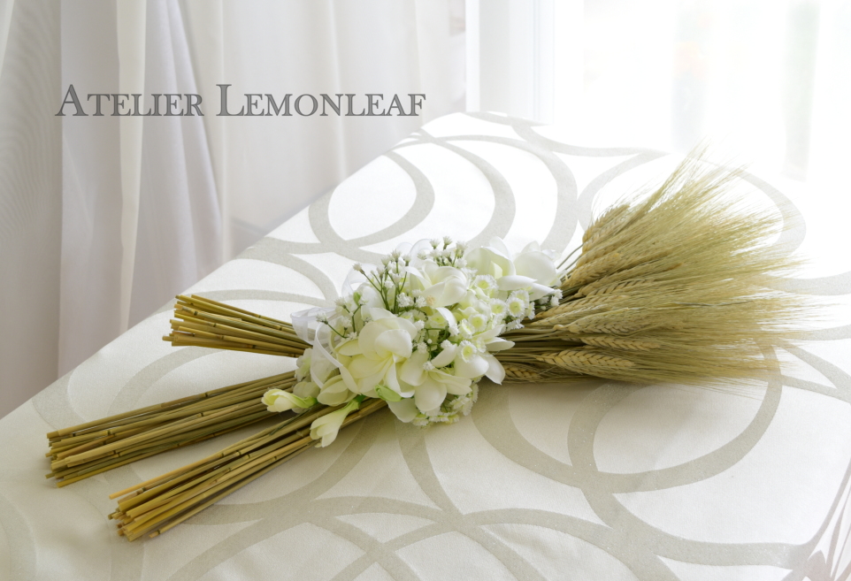 さて今回は夏にぴったりの大麦をつかったアレンジです。香や色がかわっていく様子は天然素材ならではです。