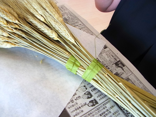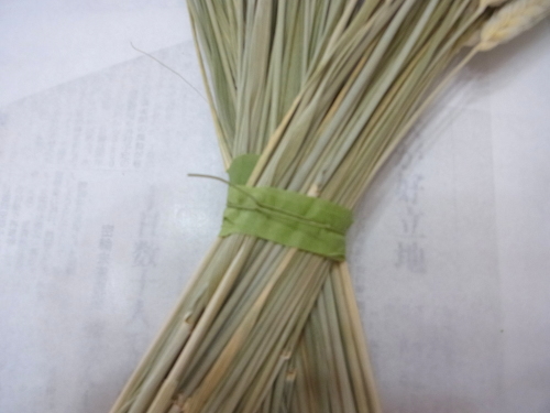 まずは対角に置いてみましょう一番下になっている麦の脇に寄せて縛り留めます。