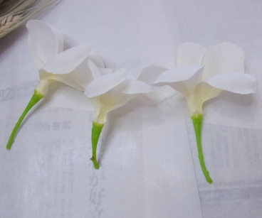 お花の準備をしましょう プルメリアを写真のようにカットします |