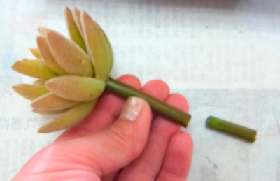 最初にビニールをカットしてから、ペンチでカットします。まず茎のカット部分にグルーを。