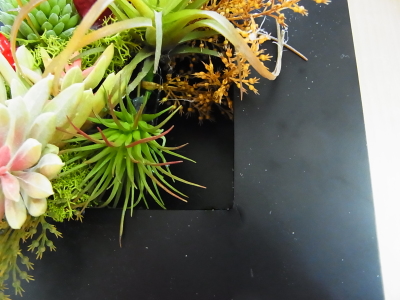 そこに本物のモスを添えるとぐんとグレードアップしてみえます。リアルなアーティフィシャルを使用しているからこそ、調和がとれますね。