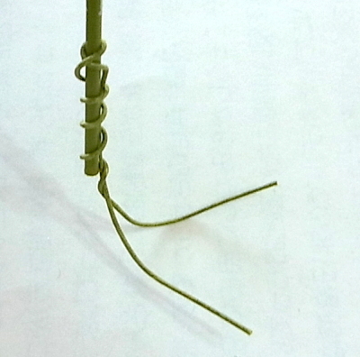 (3) ワイヤーでコイルをつくり接着、足場をつくります。