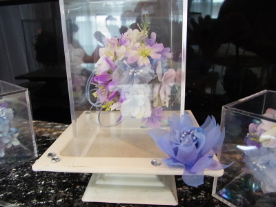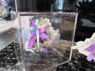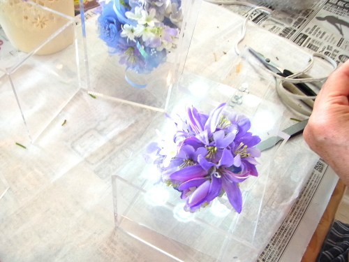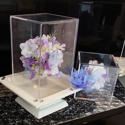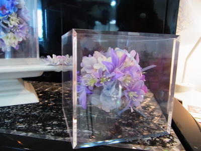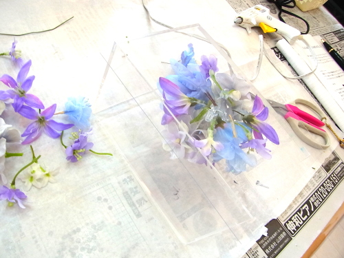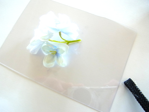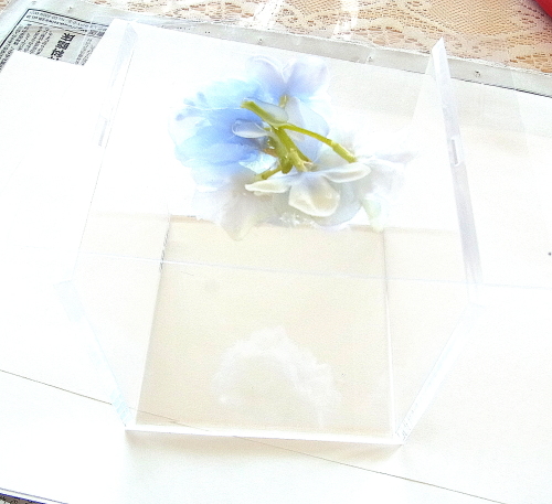 (3) 長方形のアクリル板 片面にイメージしてお花をおいてみます。