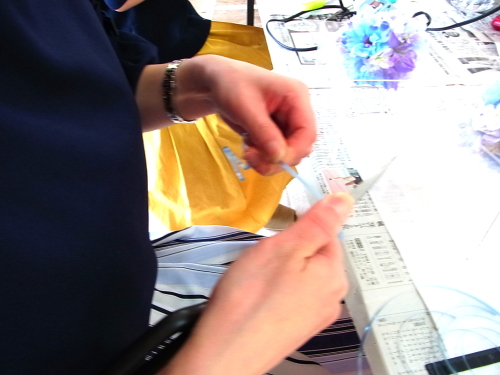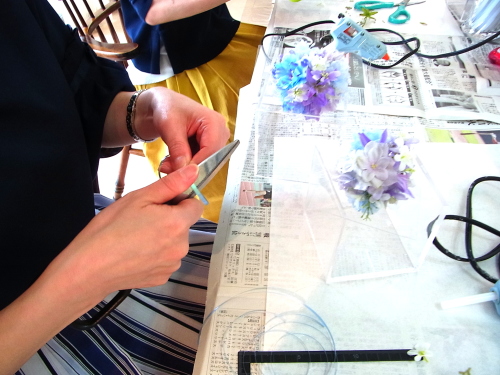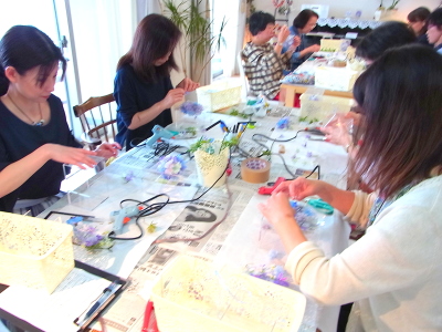 お花の中央につかったり、あるいは プレートをサンドイッチして、水玉のようにしたり、みなさんいろいろ楽しいでつかっておられました。
