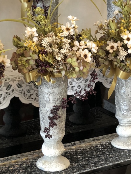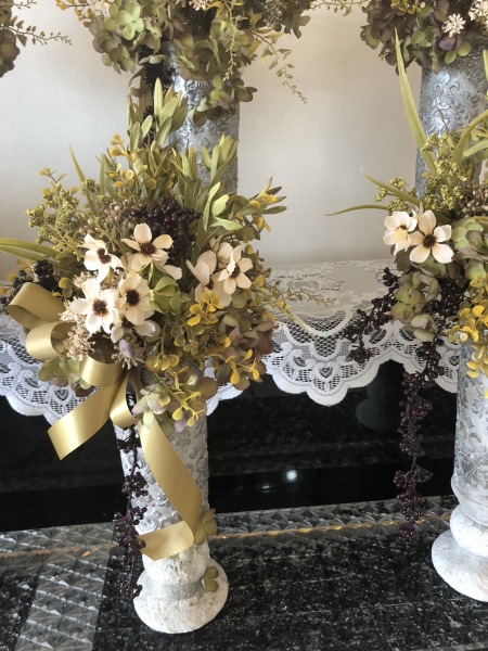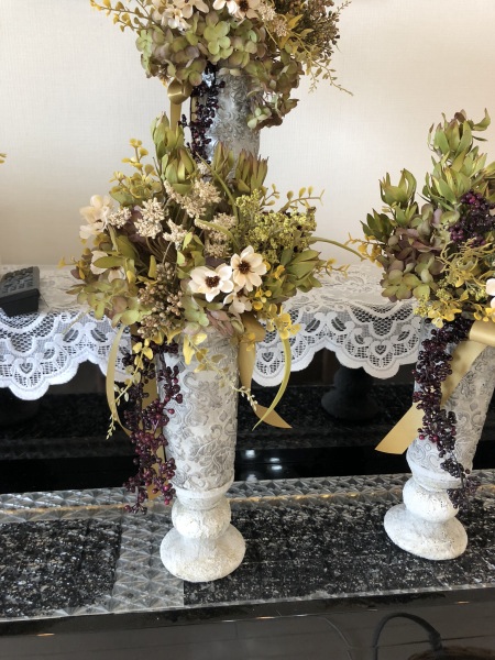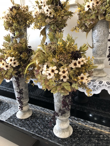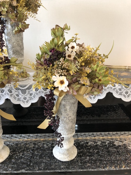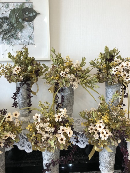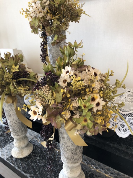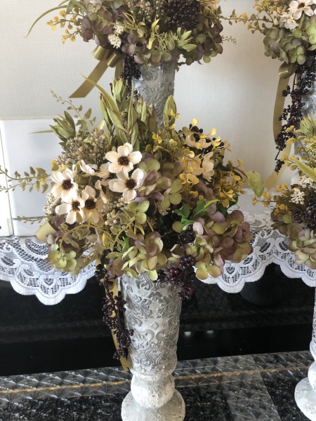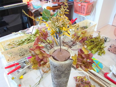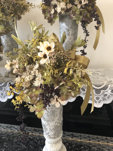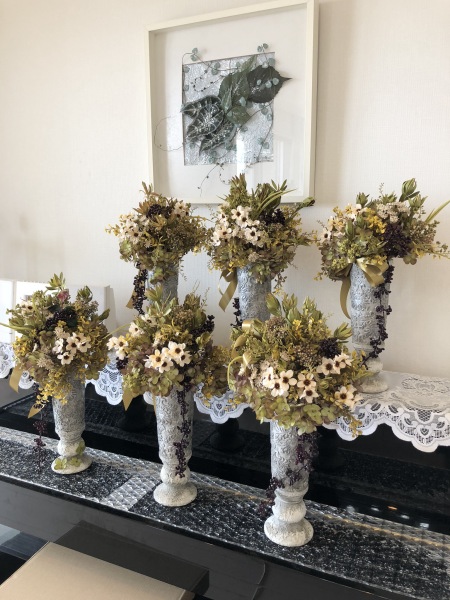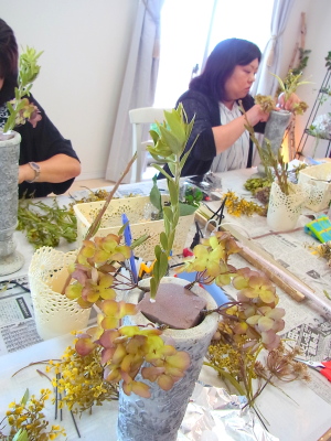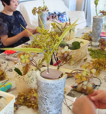 こちらは別のトップ。 4方向にアジサイをいれました。アレンジしていきます。