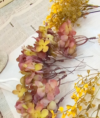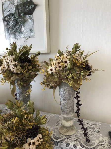 ドライのバラの花は黄色など色が変わってしまい綺麗ではなくなるものもありますが、小麦など葉物の変色は楽しめるものがいっぱいありますので。