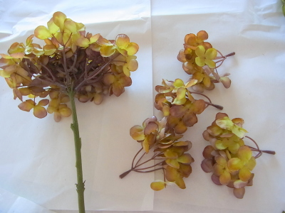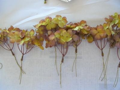 (2) あじさいを小分けにしてすべてワイヤリングします