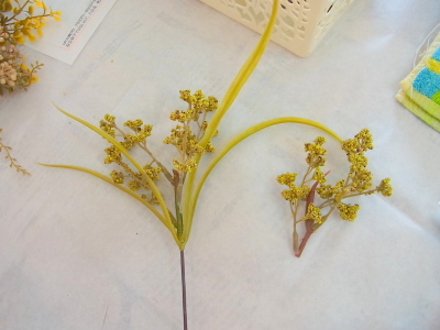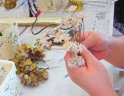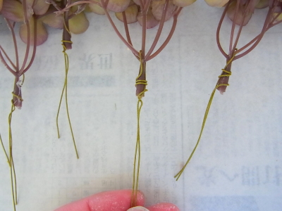 (3) その他の花材も、小分けにして適宜ワイヤリングします。