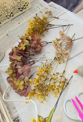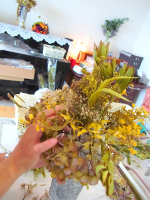 トップにする花材をきめます。なんでもOK