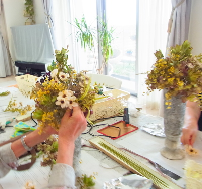 アーティフィシャルオンリーの先生方はドライはお気付きにはならないようですが、私は天然素材が大好きなので、なるべくいれるようにしています。(^^)