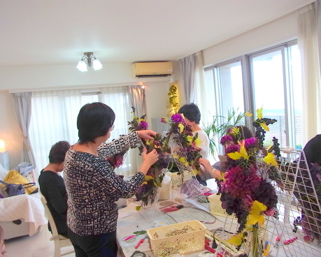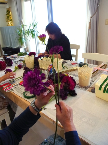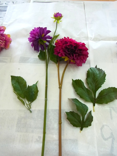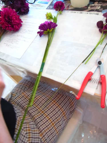 花材は広げる、構造をみる、切り離せるか、まきついてるのか、上下はあるのか、自分中心に使いこなすのですよ~!! |