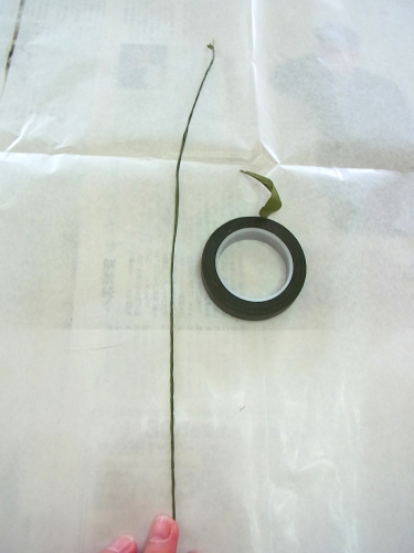 細いワイヤーに上から下まで フローラルテープをまきます。しっかり引っ張って巻きましょう。