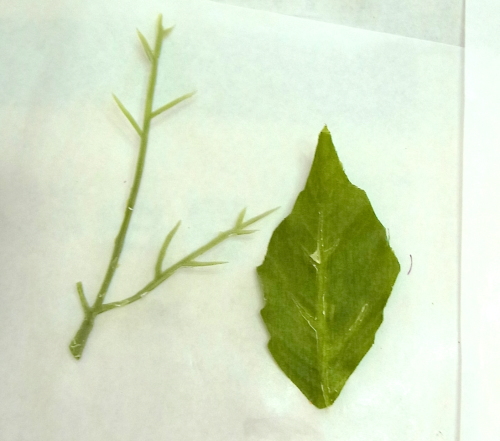 サンプルはワイヤーをひろげ、カットそのまま葉っぱシールにグルーで貼り付けました。