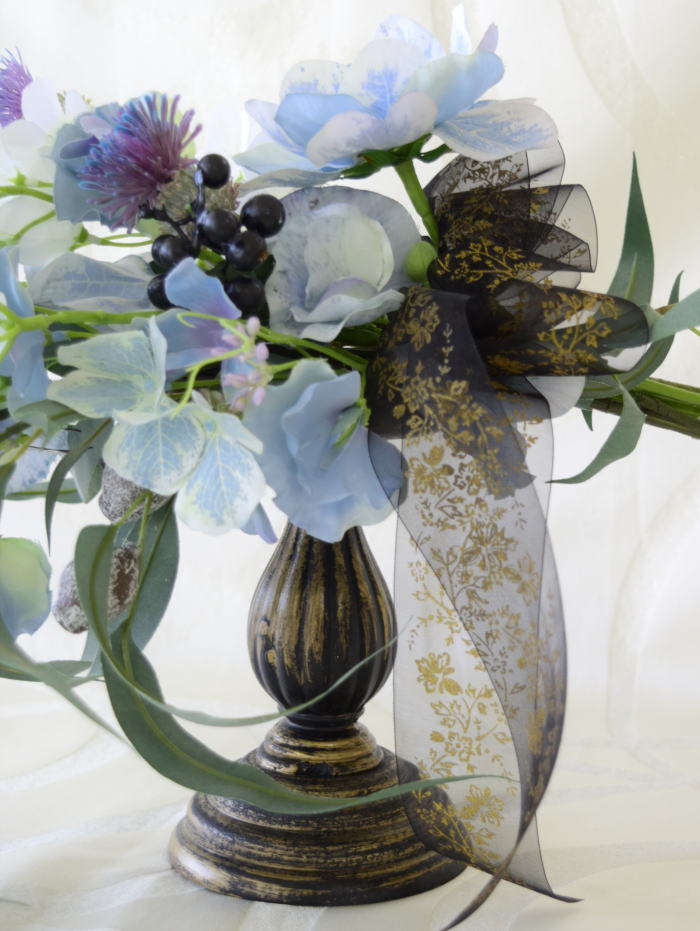 器にフォームをセットして挿し込んで作ることもできますが、それをすれば、足元を完璧に隠す必要がでてくるので、このようなふんわり透け感のあるアレンジは不可能です。
