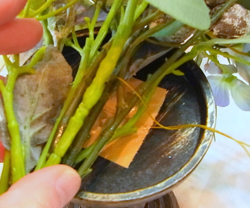 このとき葉脈をはがすと、ペロンととれて、葉がペラペラになって、使いやすくなります。