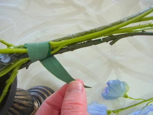 器に固定するのは テープで巻き留めた部分ではなくて、テープより上の花の部分になります。