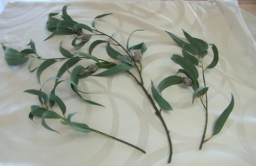 ・束ねた茎、ユーカリの先端に箇所の3点のバランスをとります。