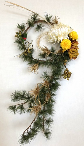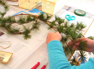 このしだれ松は大変人気でした。アトリエレモンリーフにて確保していましたが、他にも希望の教室がたくさんあったようで、資材店からは何度も「全部使いますか?」とチェックがはいったほどです。