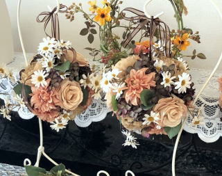 大小連結させてもカワイイです。あるいはいままでのアレンジのリメイクに。先端んだけカットして、ボールブーケに加工するのも楽しそうです。