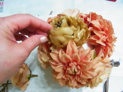 ボンドは乾くまで時間がありますので、穴はいくらでも空け直しができて、便利ですねラナンキュラスは手でと向きを変えるだけで、正面をむいてくれます。