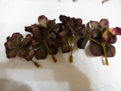 大きな穴が隠れたら残った半分のあじさいを さらに小分けにして、素地がみえているところを隠します