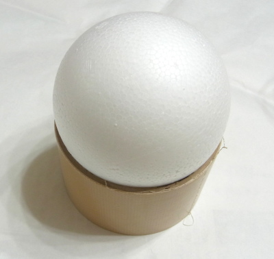 上から太い針金を下まで、まっすぐ貫通させます。写真のように素ボールをガムテープの上にのせると安定します。