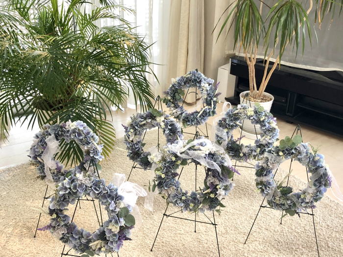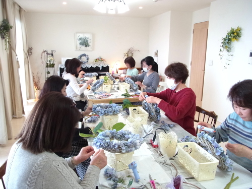 アジサイのシルエットでつくってもいいですし、あとでたす花材でつくることもできます。