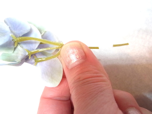 アジサイを1本分を全部、茎肚外します。ひっぱるとキャップがかぶっていて外せるようになっています。