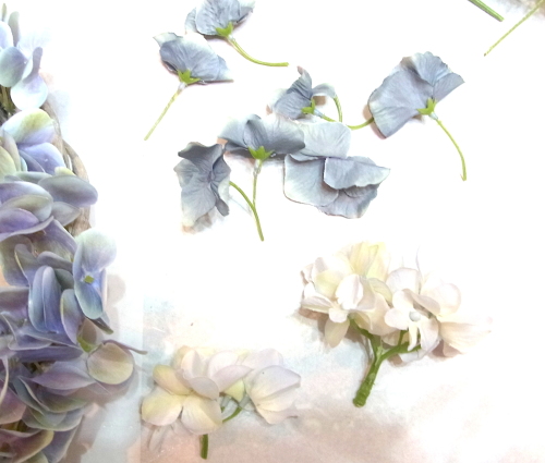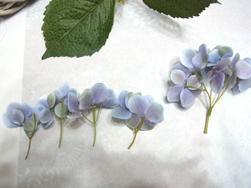 そして白いアジサイも1/3程度、小分けにしてしょうめんにいれましょう![]()