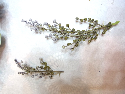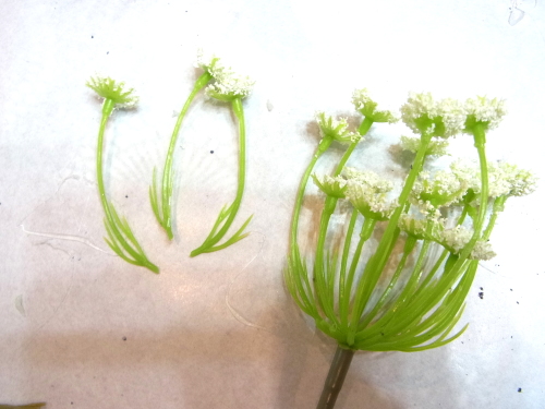 (アーティフィシャルフラワーはこのジョイント方式でほとんどつくられています。外れてしまったら、挿しもどしてあげればいいわけです。)