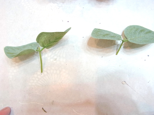 一本分の半分を 写真のように短く切ります。1枚1枚になってしまう一つ前の節でカットします