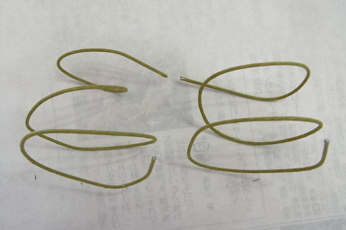 | 細めのワイヤー1/2をUピンに曲げ、写真のようにねじります | |