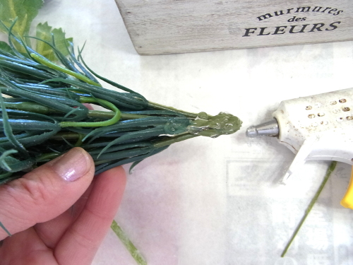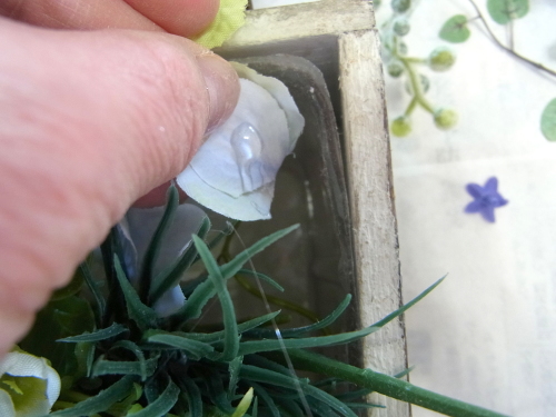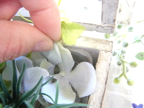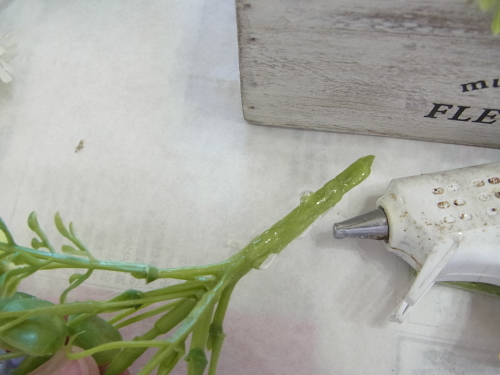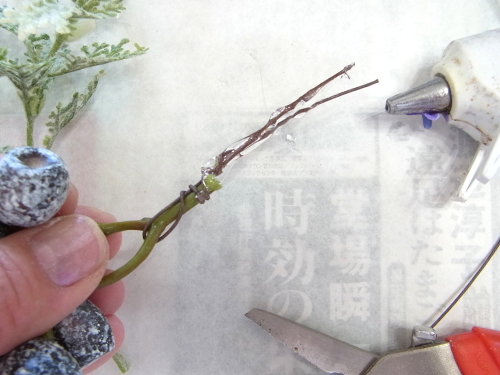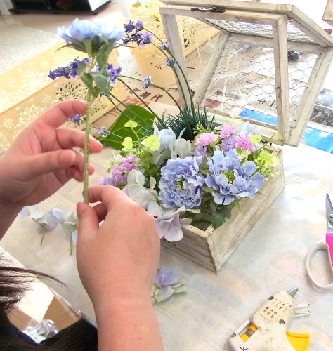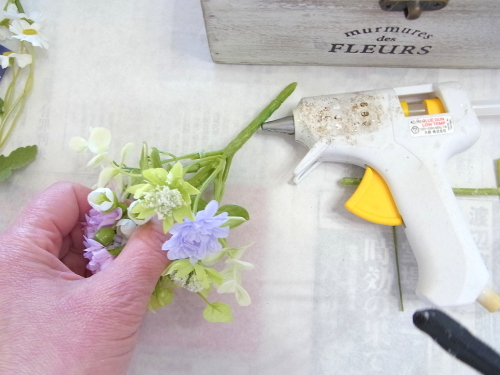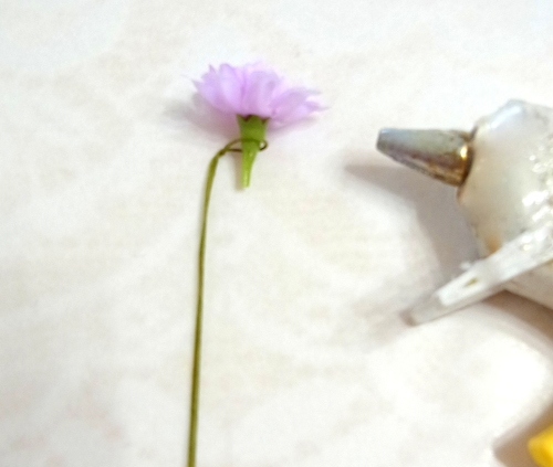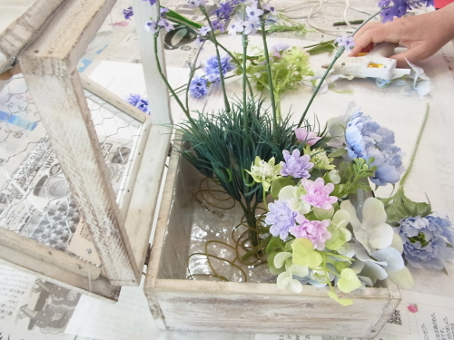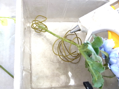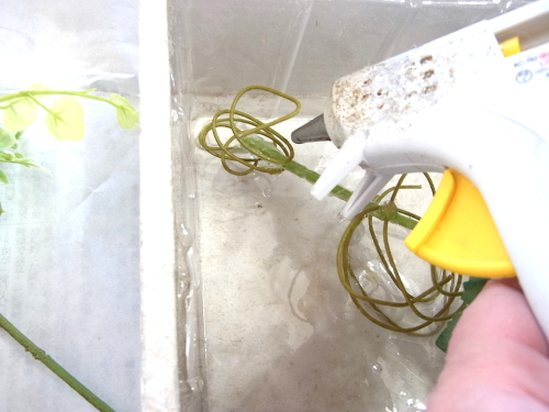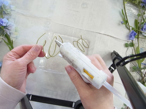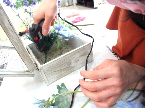 | そこにお花を入れグルーで固定。乾いたら、好きな位置に入れましょう |