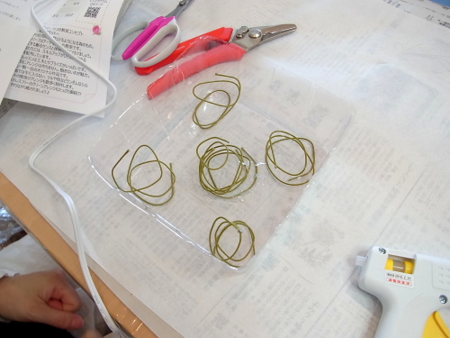 | ここからはコイルにつけたり、透明のトレイに直にはりつけたりしながら創っていきます。 だんだんとお花がふえてくるとそれも足場になってくれます。 |