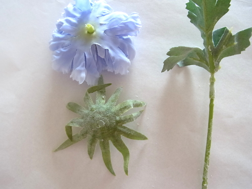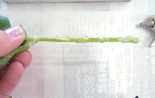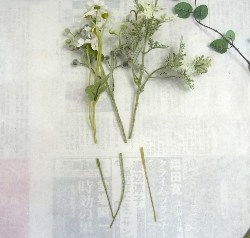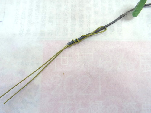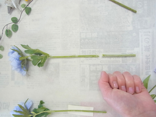 | ポイント 救出したお花に茎をつけます。 これはちいさすぎて、ワイヤリングはできません 別の方法をとります |