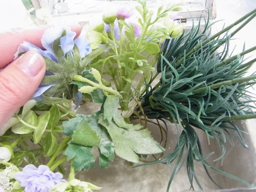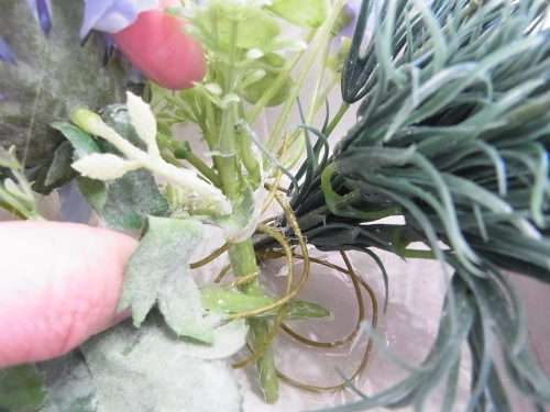| ミニフラワーの高さはちょうどよく、どこもカットせず、コイルの間に挿しこんで、固定できます。 | |