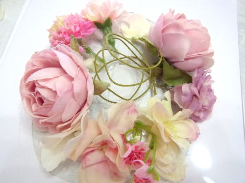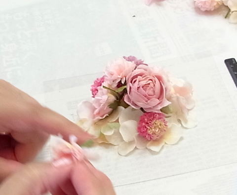 作る前に、小分けにしたお花で、ふんわり盛ってみましょう。 こんな感じね~と立体的なイメージをつかむことがとっても大切です☆彡