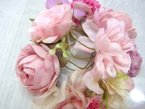 花材は半年で、バージョンが変わるため、画像のお花やリボンがお手元のものと違います。作り方は同じですので、どうぞご安心ください リボンやビーズなどご自宅のお好きな花材をそえていただいてもOKです。