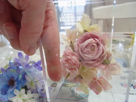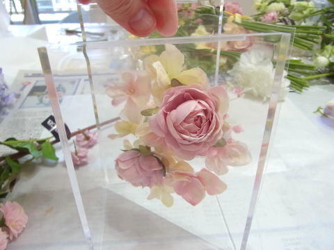 ケースにお花があたっても綺麗にみていれば大丈夫ですが、お花がつぶれてしまったら 奥でカットして取り出し、付け直します