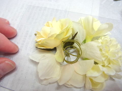 グルーのあとはもうとれません。花材にグルーをつける時はタレないよう、プレートの外でつけましょう。