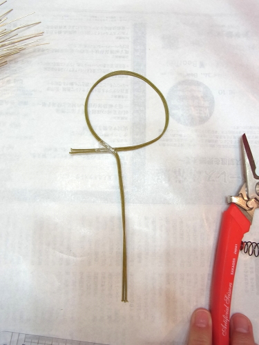 太いワイヤー2本をまるめて、6~7センチの〇をつくります。