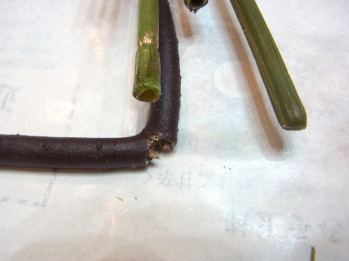 多いところ、もっと前に出したいところなど、背面ろから2本~3本切り出して、グルーで挿し込みます。