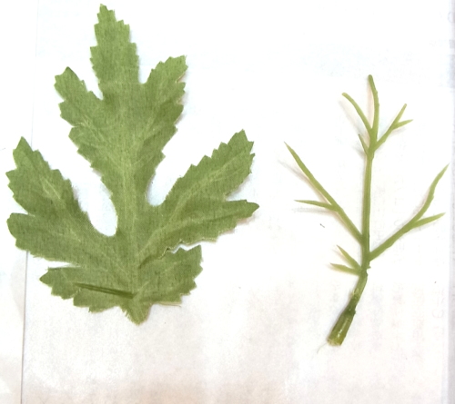 グルーで好きな位置に貼り付けます。余った葉っぱがあれば 葉脈をはずしてペロンとした葉っぱにします。