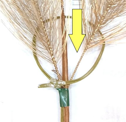 菊は最初のテープの位置より少し下がった位置にとめます。理由は花首のすぐ下でとめると窮屈そうにみえるためです