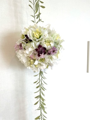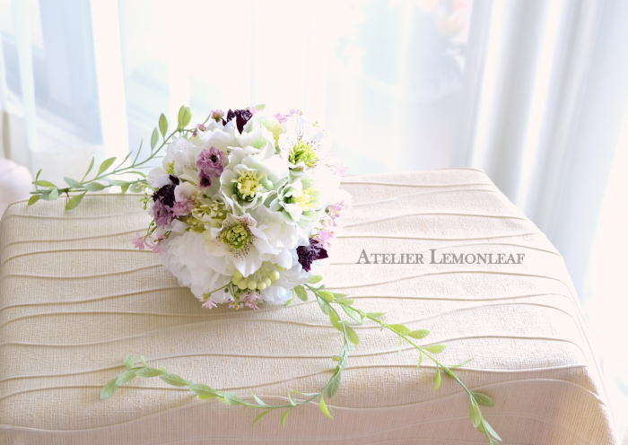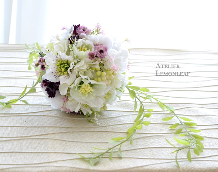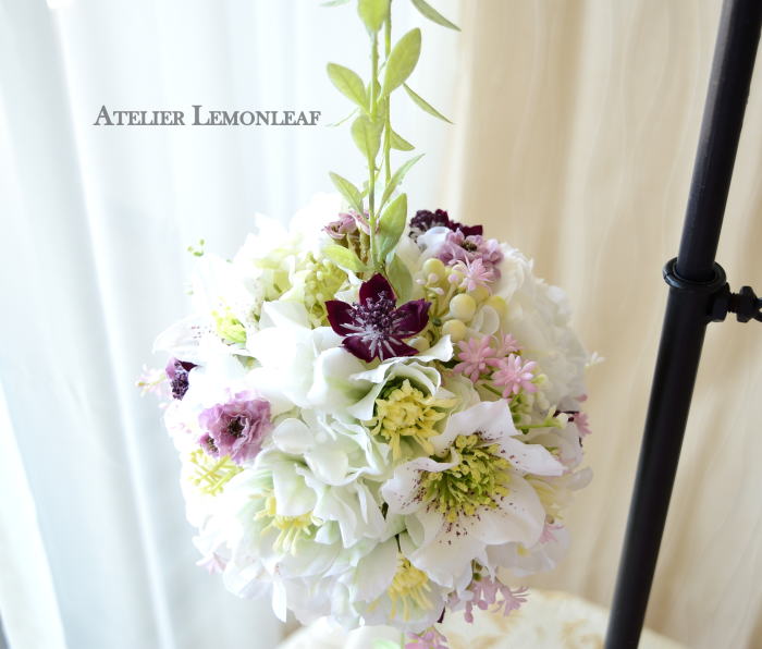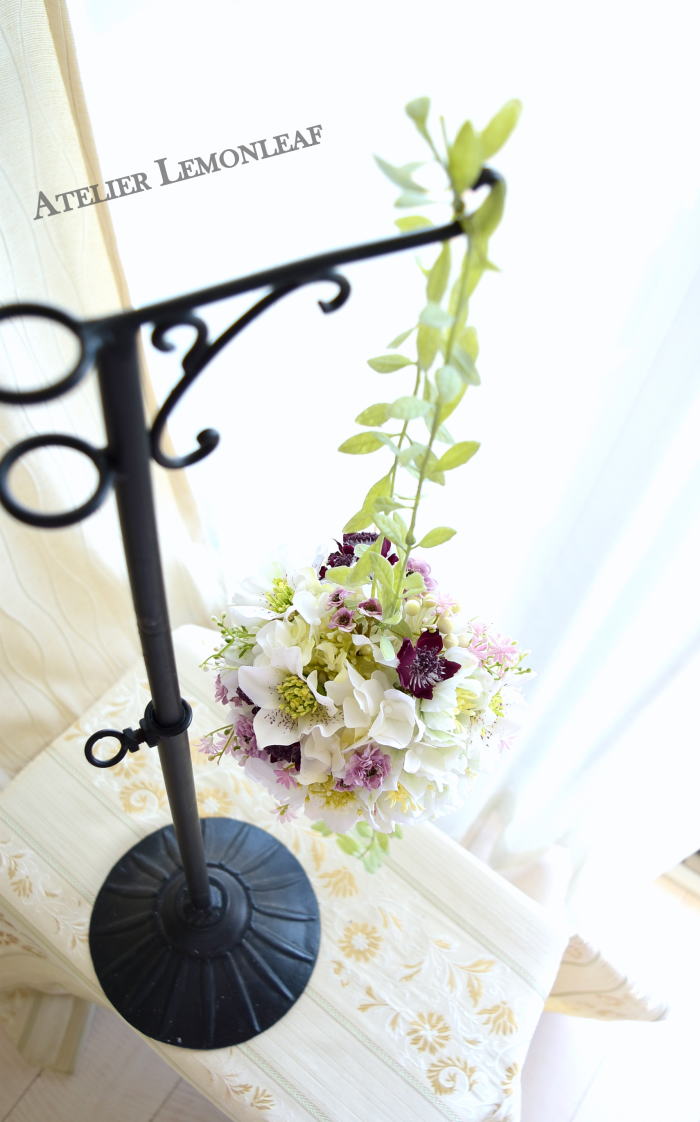 さて今日はビーンズリーフで揺れるボールブーケです。早速参りましょう♪