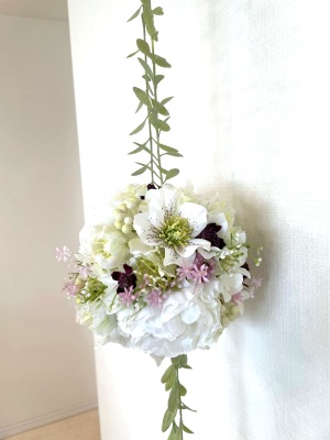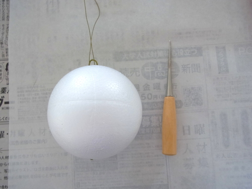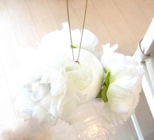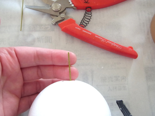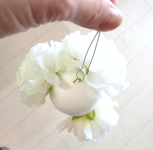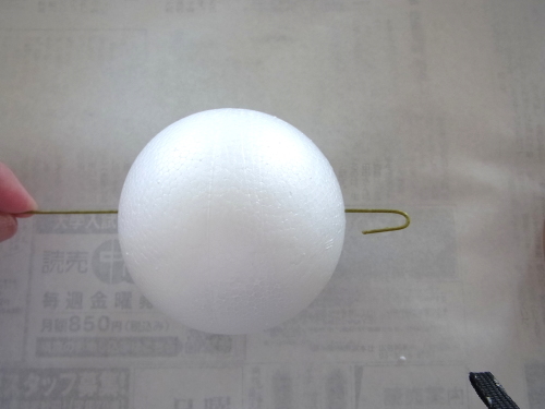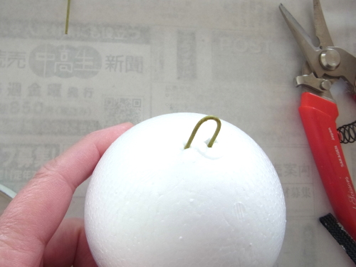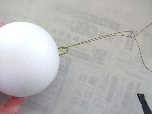 ビーンズリーフは短い方を、吊るしていたワイヤーを使ってで素ボールにとめます。フックになります。