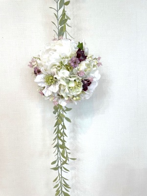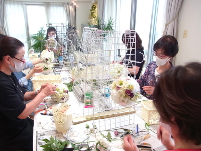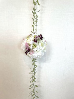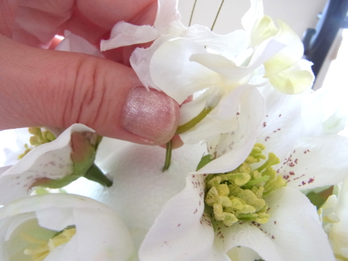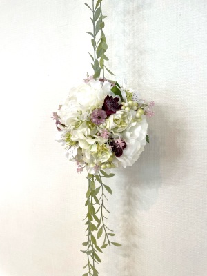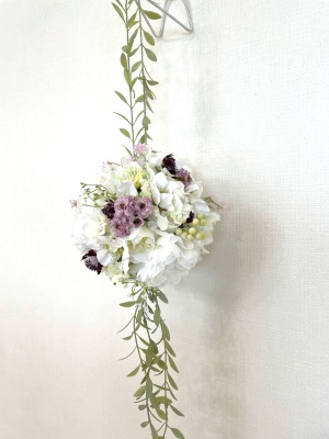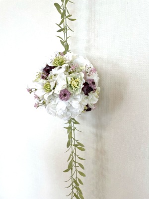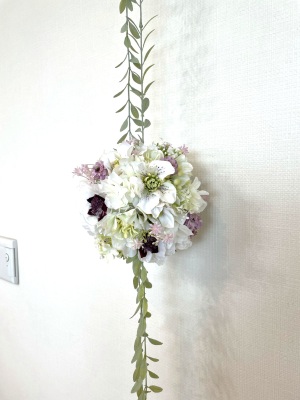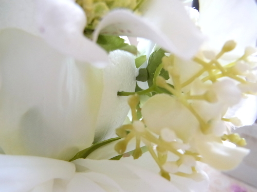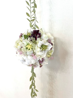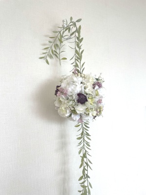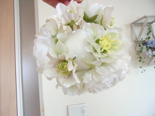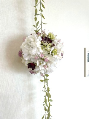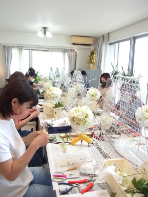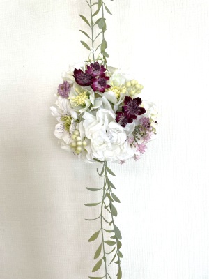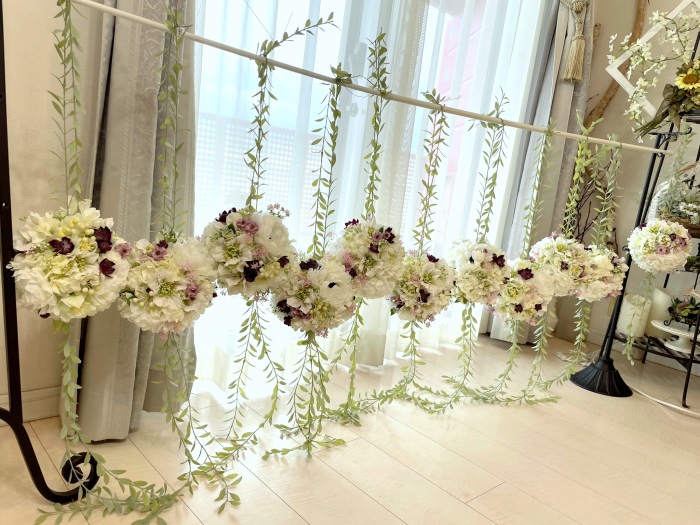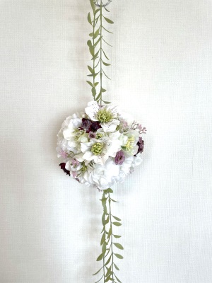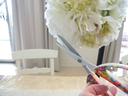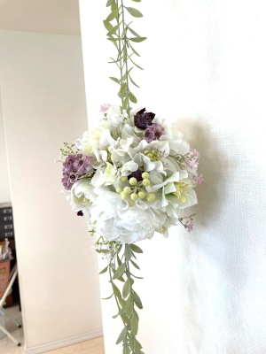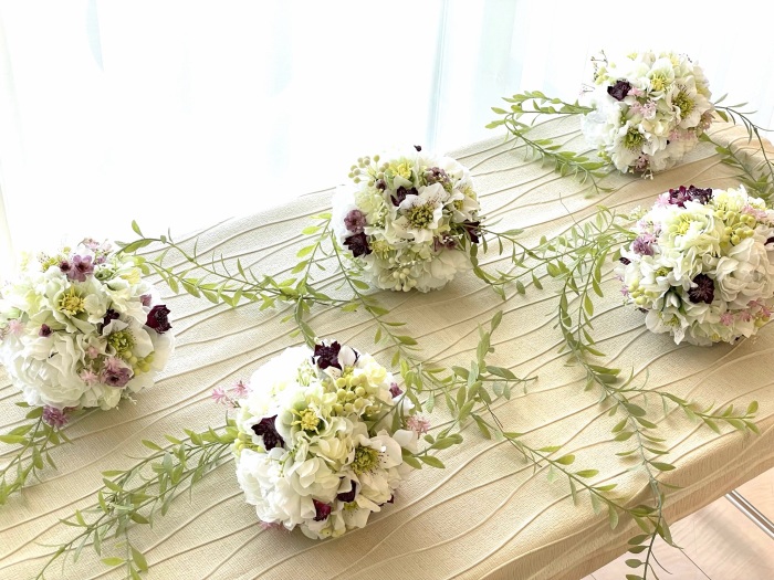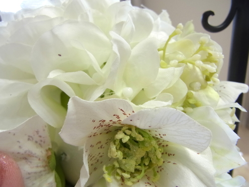さらに空いているスペースを白いアジサイでうめていきます、小分けにしましょう